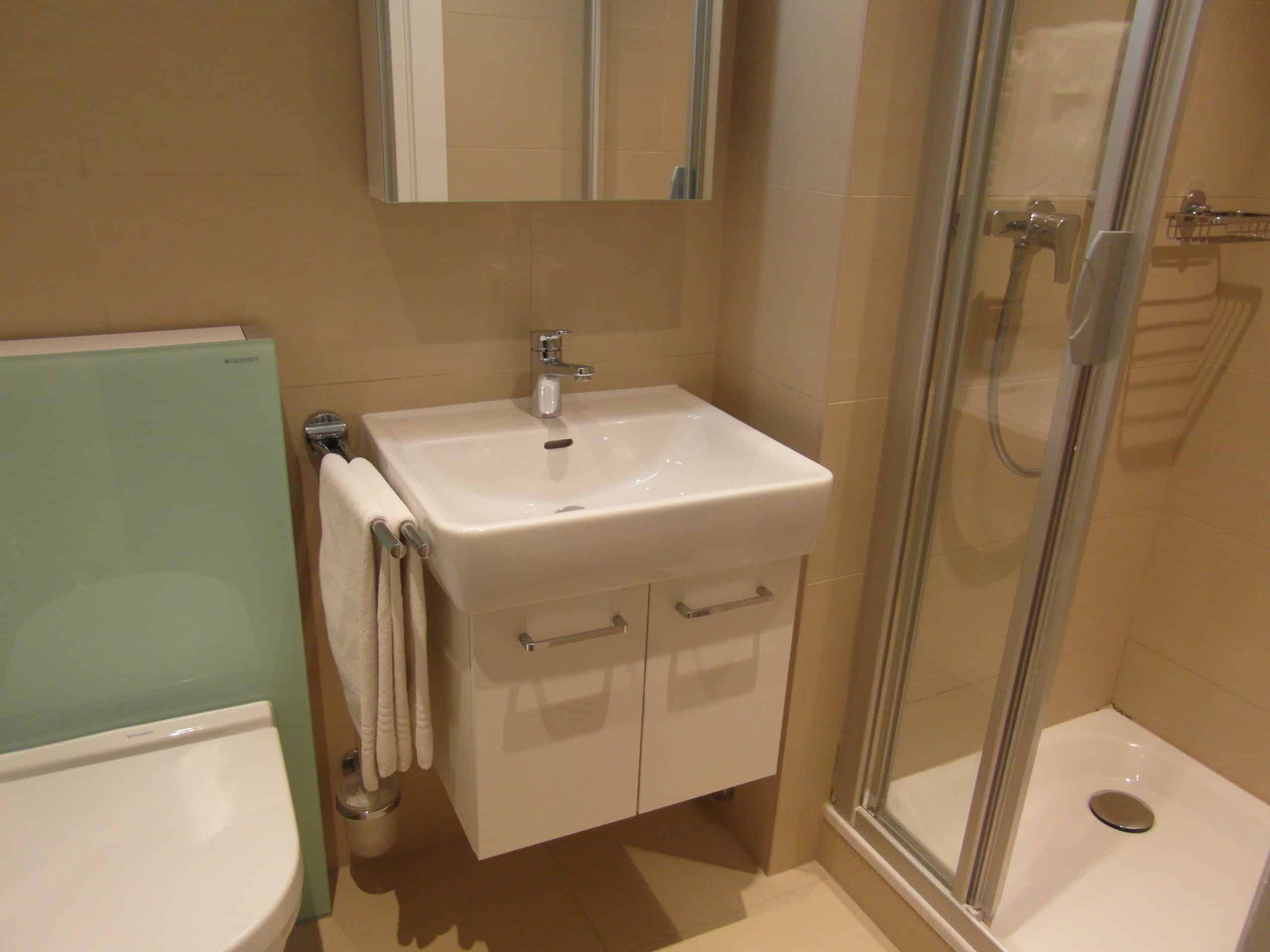 - Bathroom with a shower, toilets