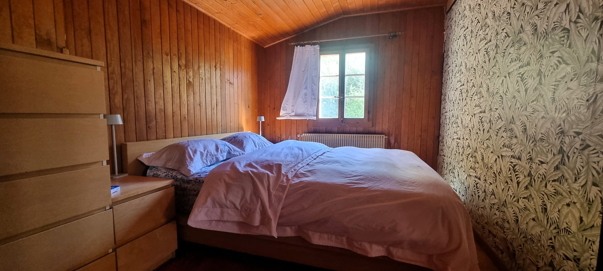 Chalet entre jeux de lumière et forêt